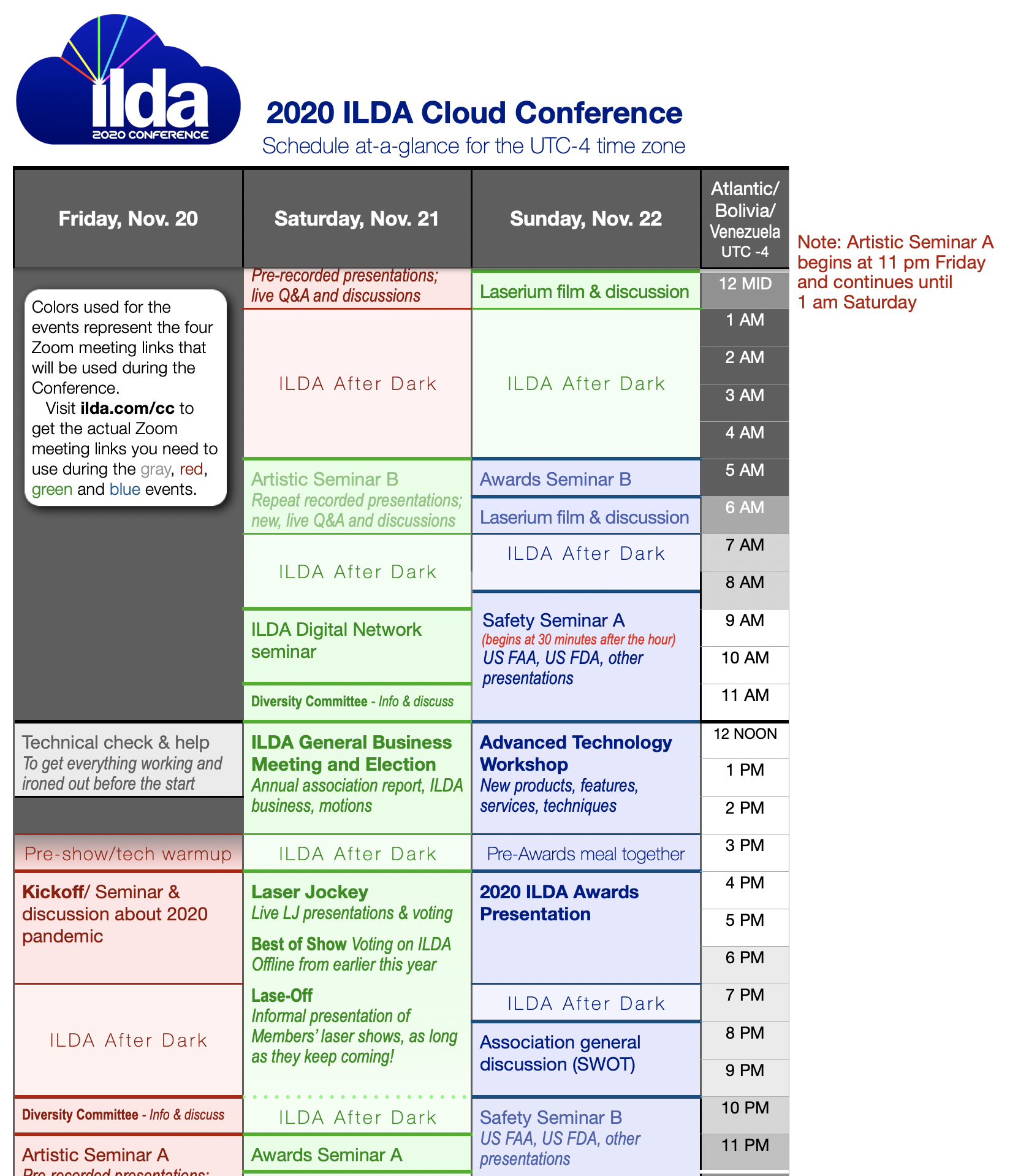 NOTE: This webpage was active during the ILDA Cloud Conference, primarily for registered attendees. Among other things, it lists each of the Conference events.